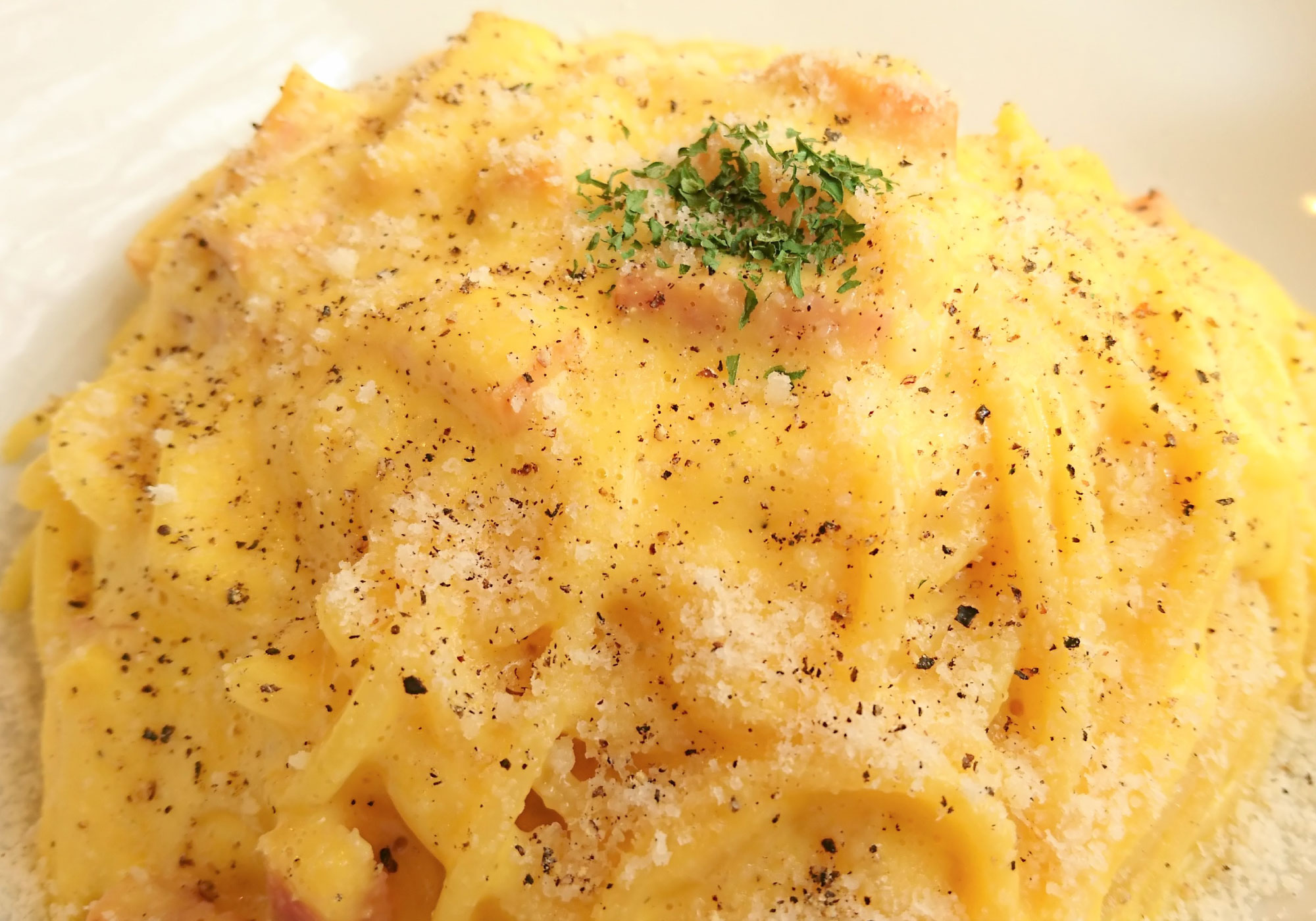 当店のカルボナーラは超濃厚 -