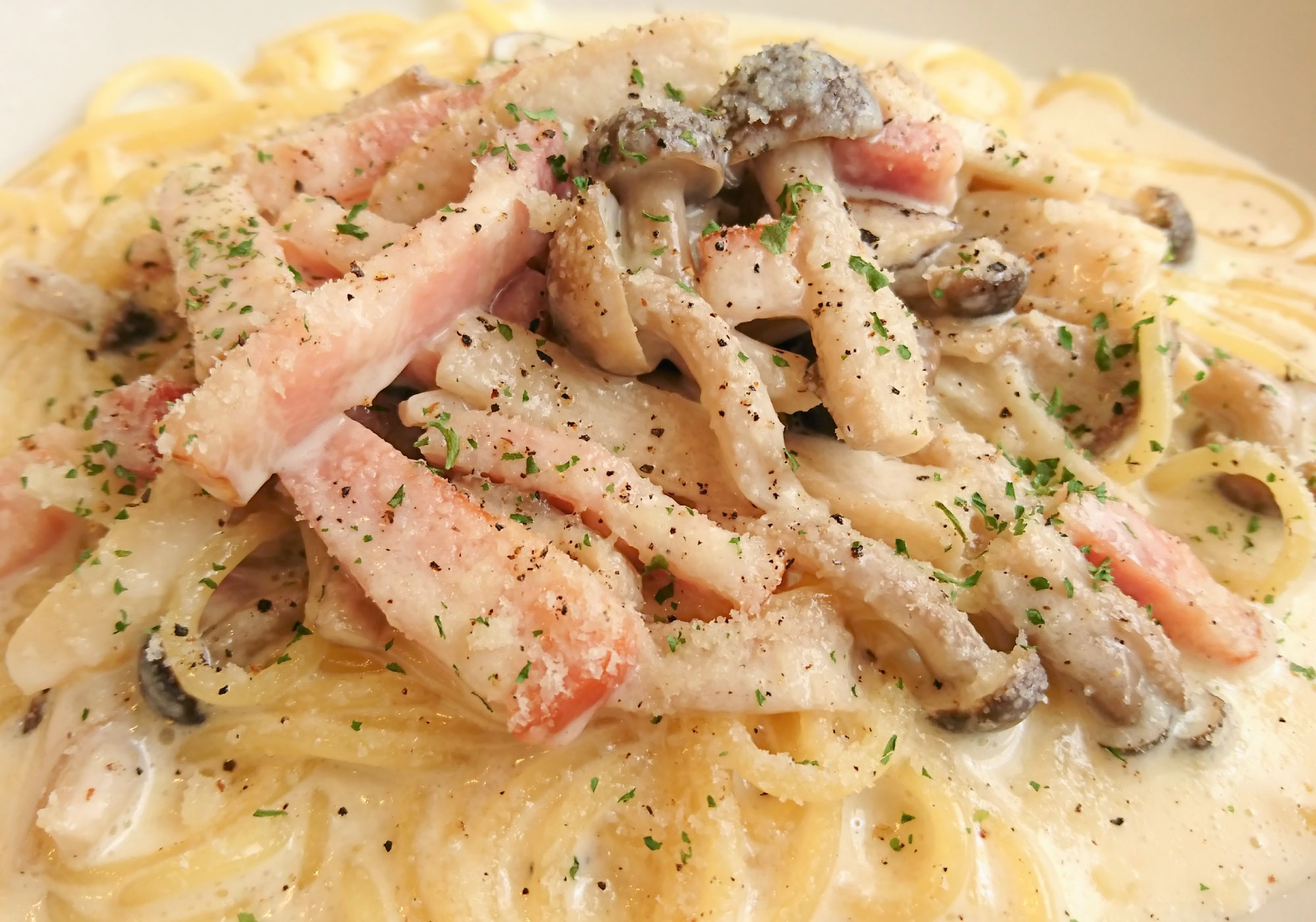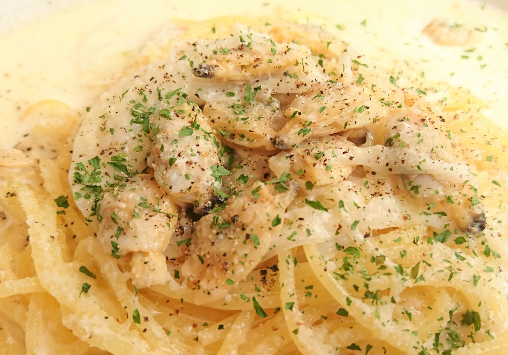旨味がにじみ出た濃厚なクリームパスタ -