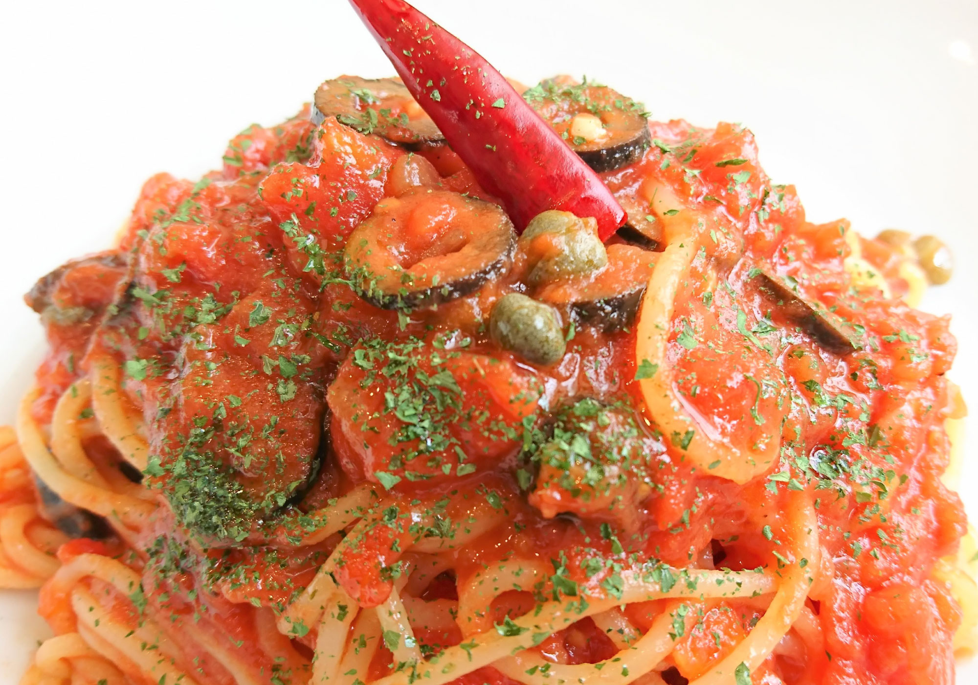 ブッタネスカ 950小悪魔風と呼ばれるアンチョビ、オリーブ、ケーパースのアクセントが絶妙な味わい