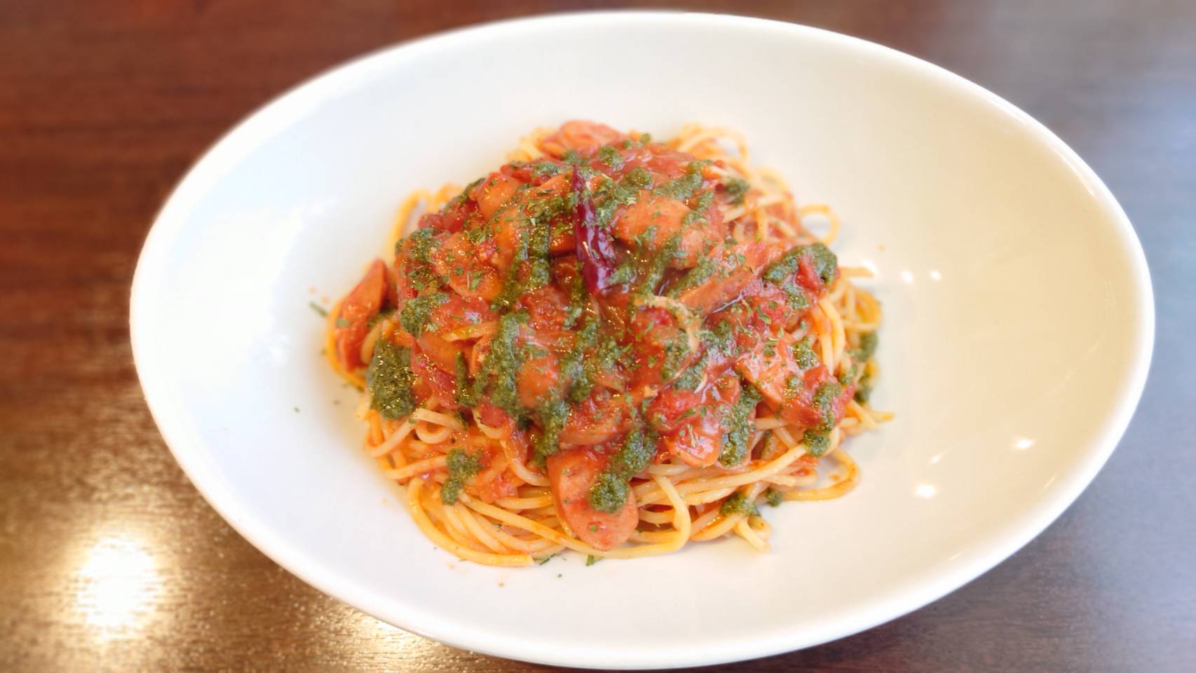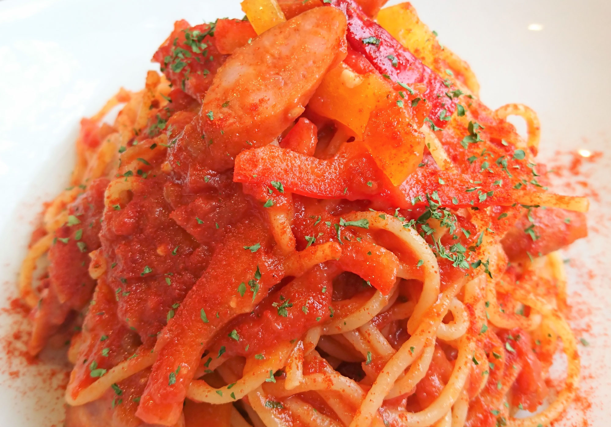 チョリソー・パプリカパスタ 1000ちょっと辛いソーセージ、チョリソーとパプリカを効かせたスパニッシュなトマトパスタ